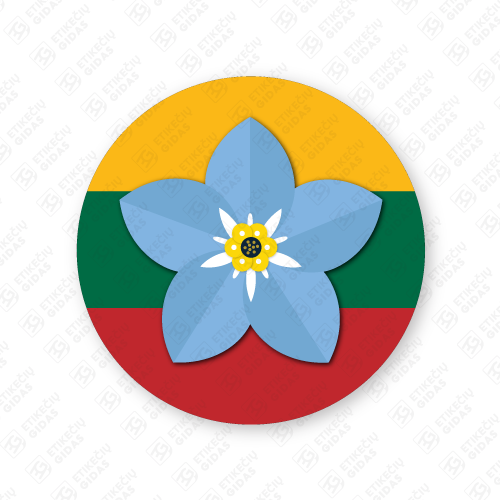 ✔️ Neužmirštuolės simbolis Lietuvos vėliavos spalvų fone.