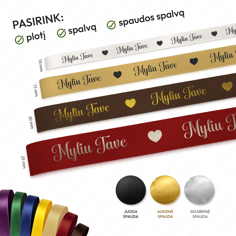 Jei reikalinga individualaus dizaino spauda ant satino juostos – ją galite užsakyti paspaudę ČIA.