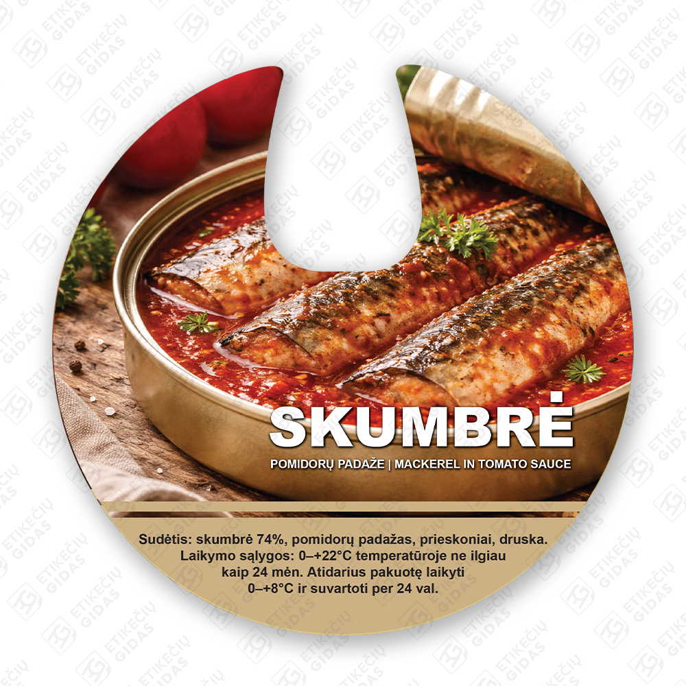 skumbrės pomidorų padaže konservų lipni etiketė, lipdukas